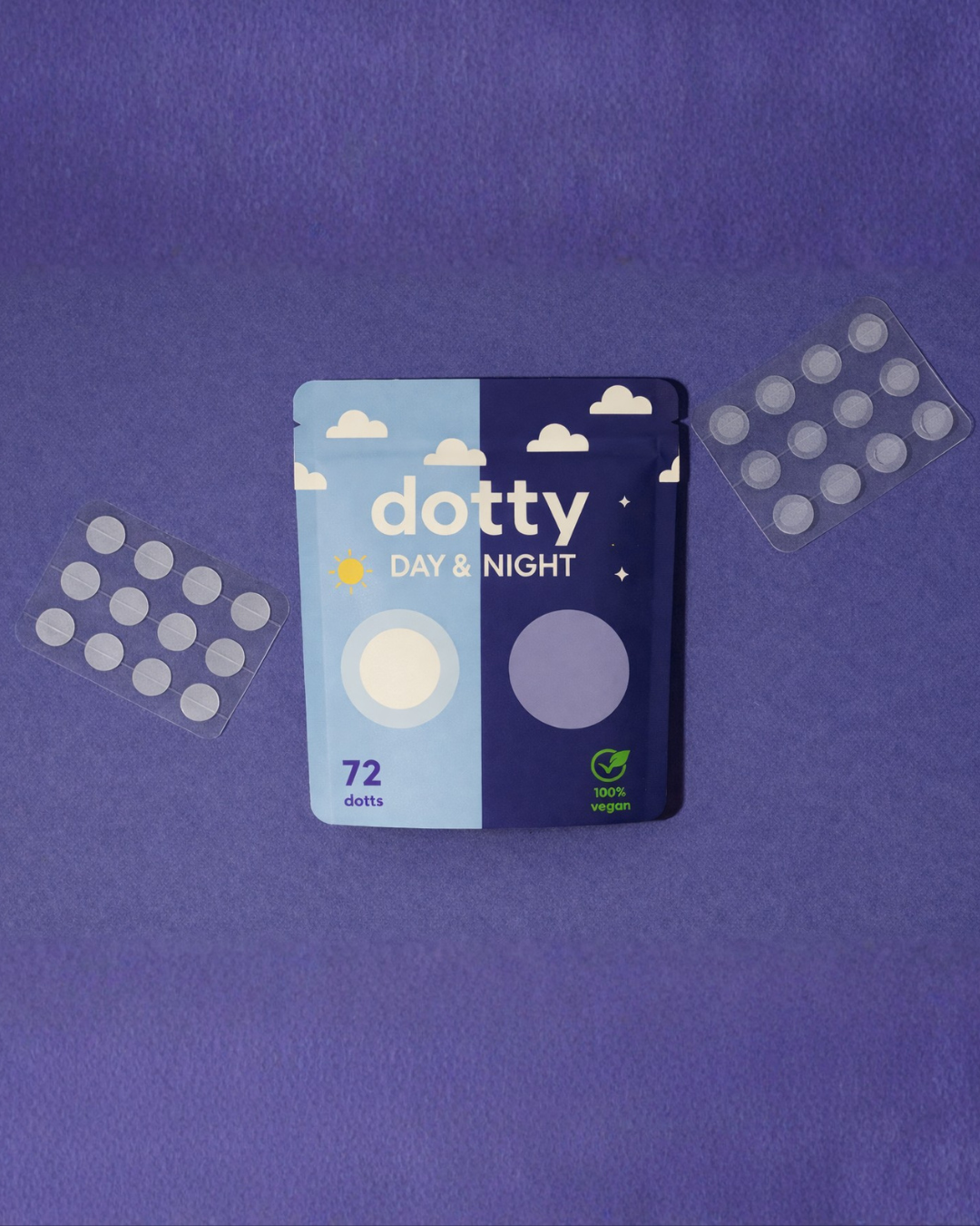Day Dots are low-profile for discreet wear (even under makeup). Night Dots have a stronger hold for overnight use, helping protect the spot while you sleep.